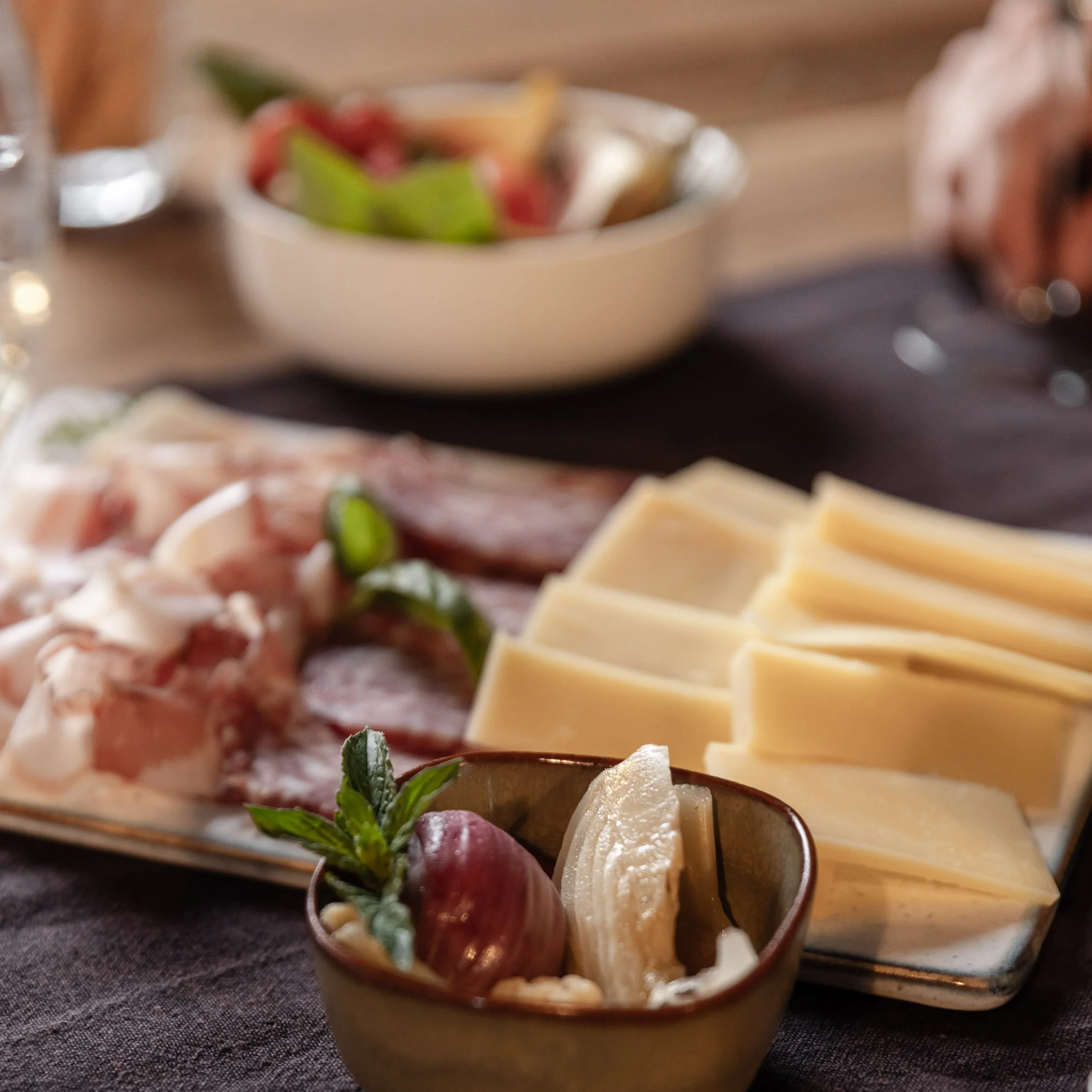 Accompagnano la degustazione un tagliere completo di formaggio stagionato e fresco, coppa, pancetta e sopressa, giardiniera e radicchio di Treviso in agrodolce, crostini con olio EVO delle Colline del Prosecco.